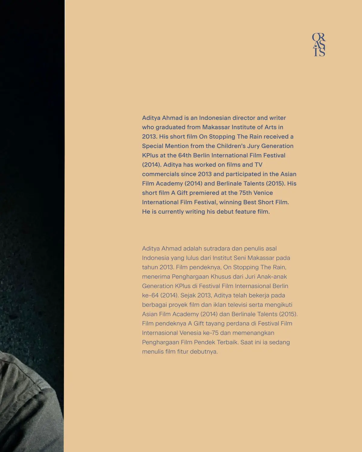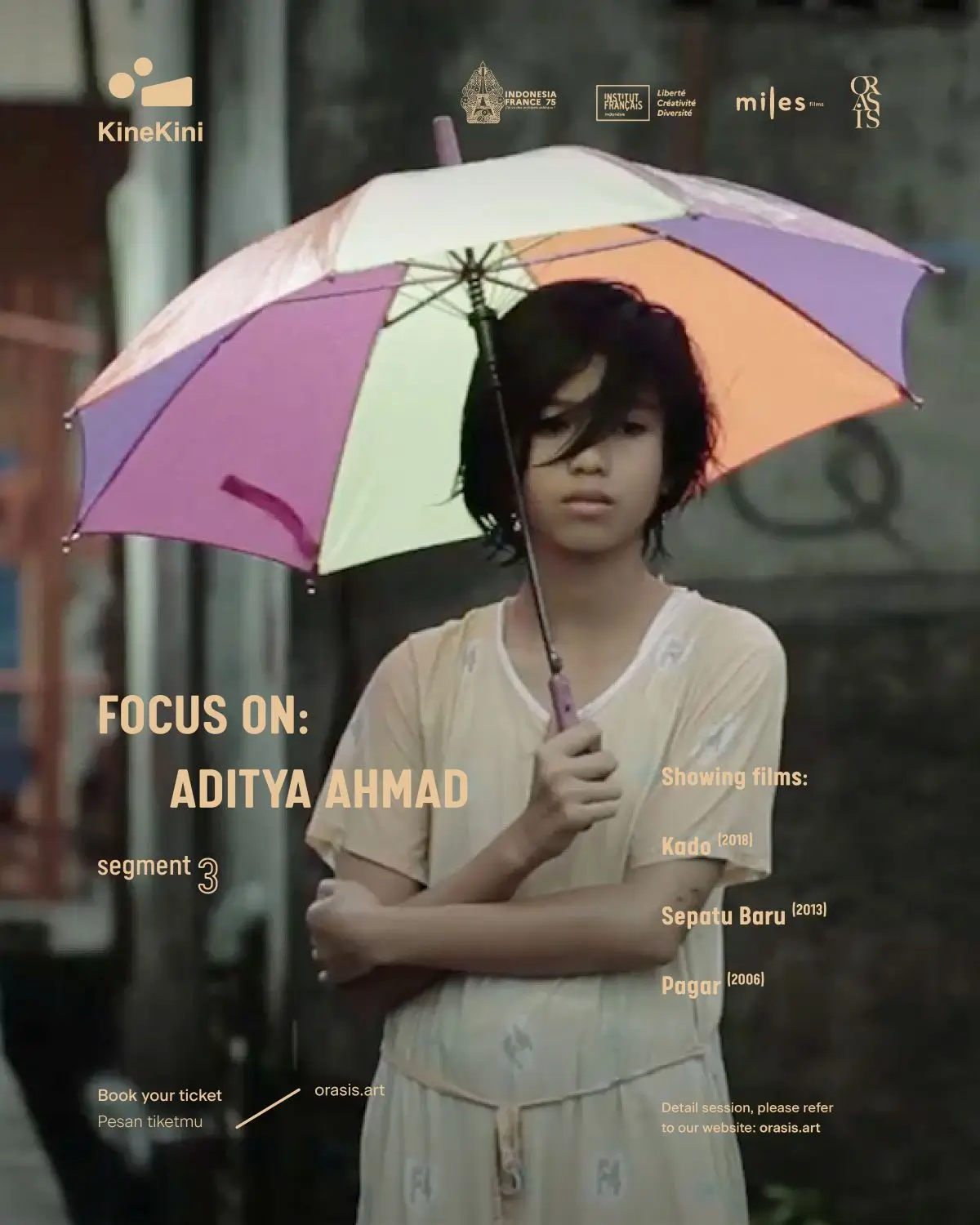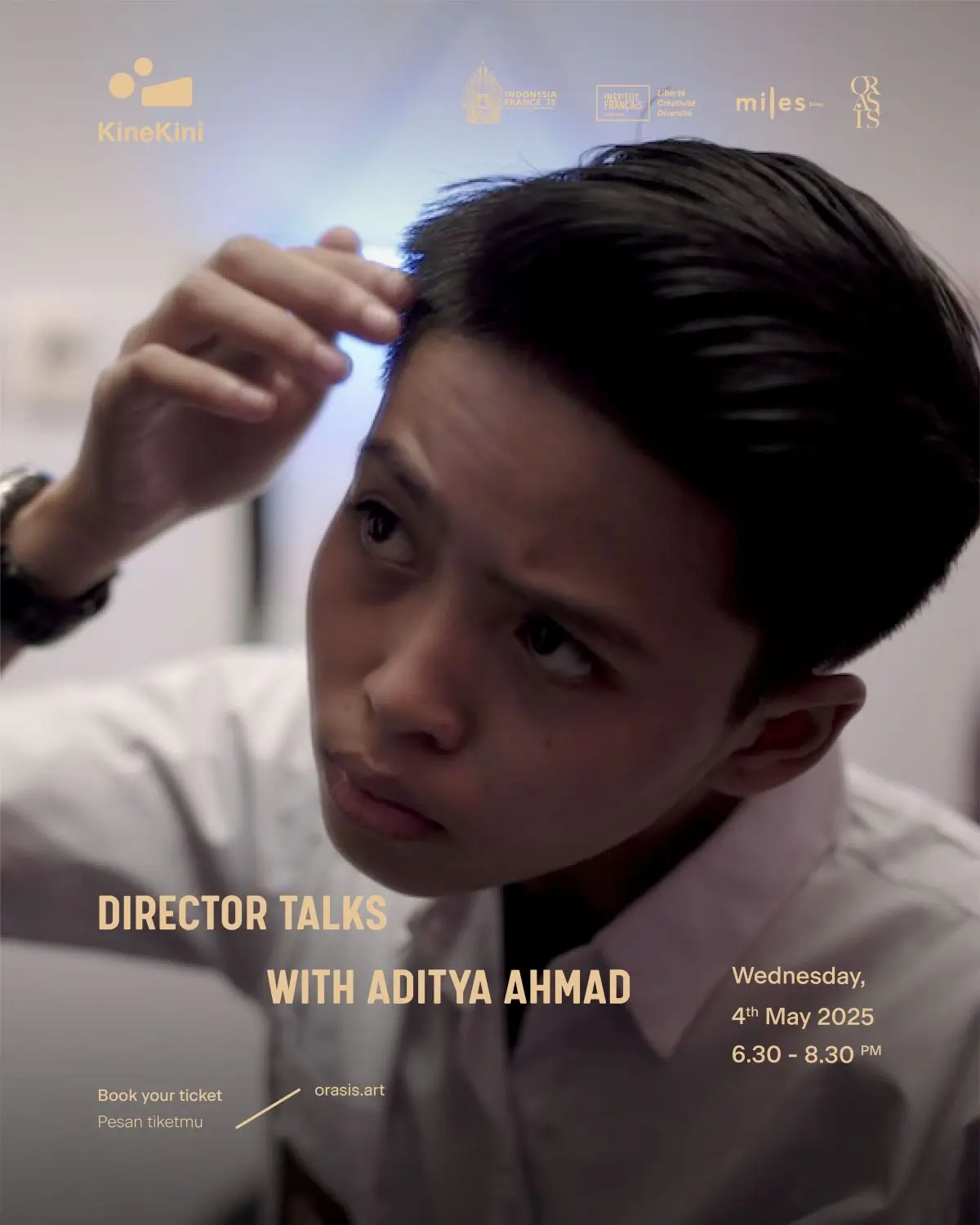 This reservation includes: * Access to the exhibition * Complimentary treats * Orasis guided tour * Screening film * Director Talks with Aditya Ahmad * Voucher Corner by Orasis