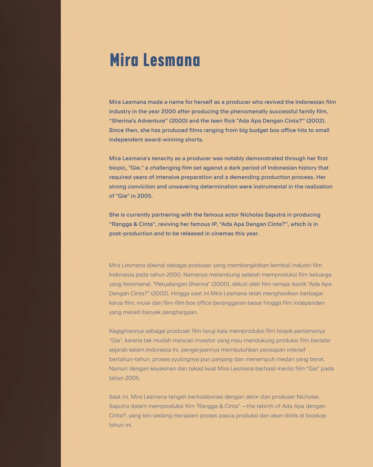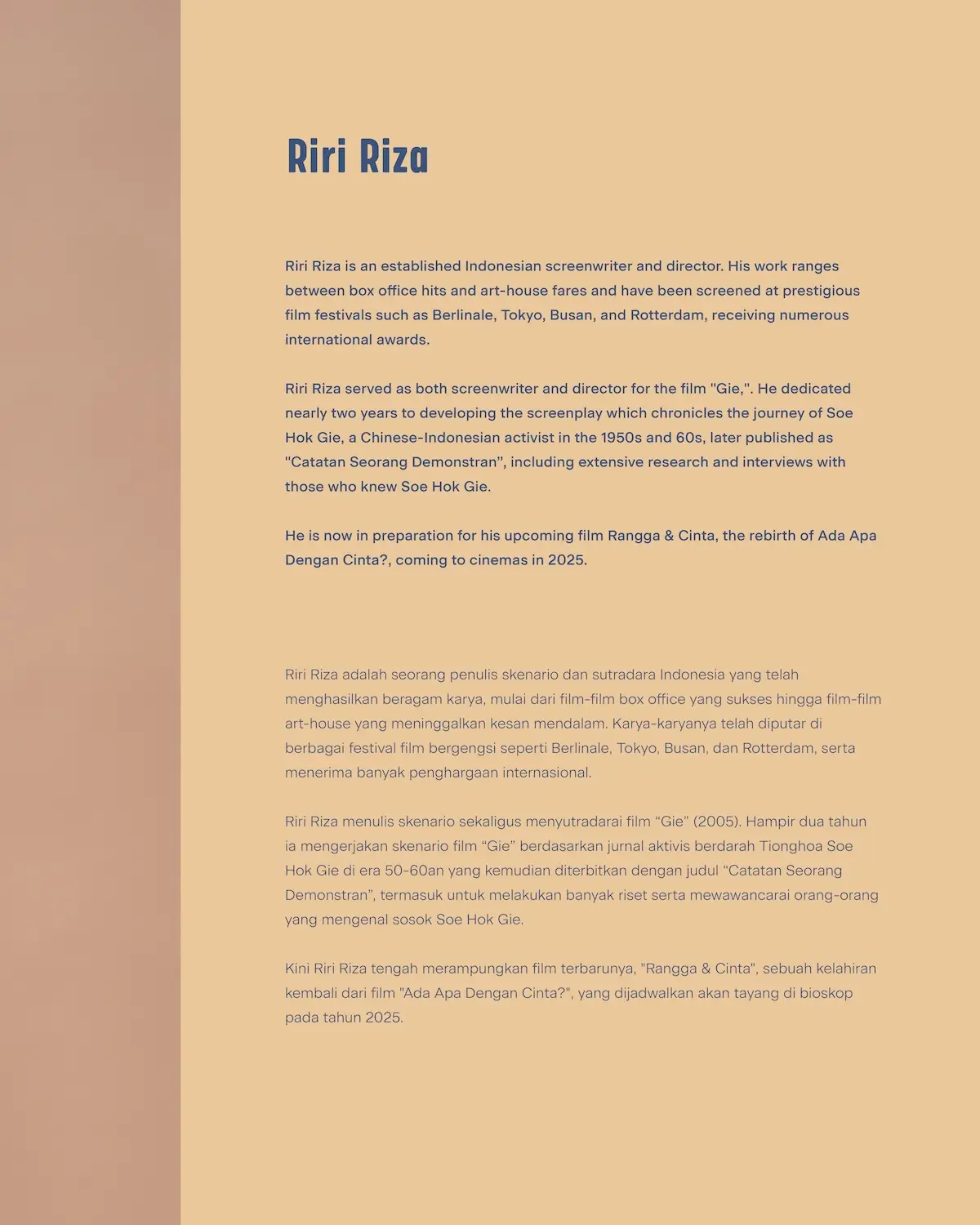 Film Screening + Roundtable Discussion with Mira Lesmana, Riri Riza, Nicholas SaputraSession 2-3: 13.30